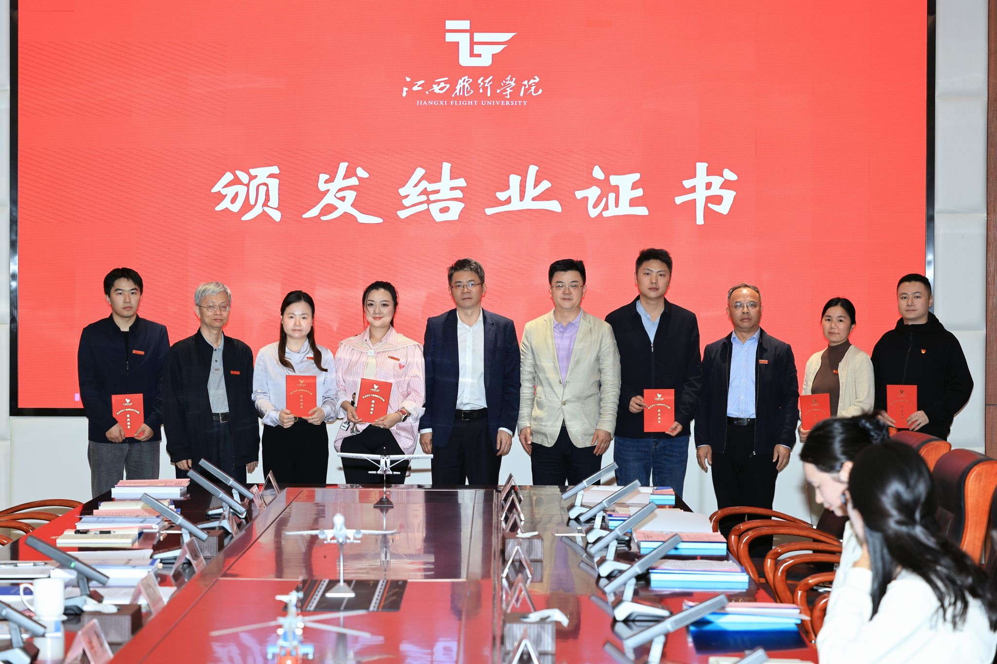 陈震为学习小组颁发结业证书并授旗。