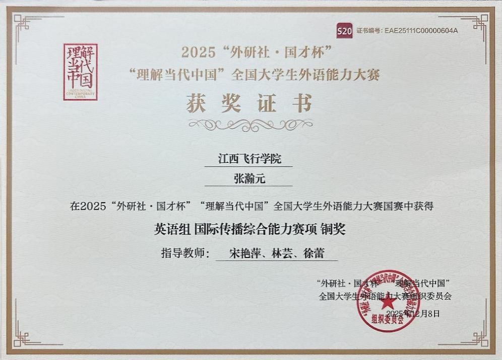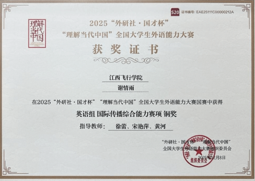 近日,2025“外研社·国才杯”“理解当代中国”全国大学生外语能力大赛结果揭晓,经过多轮激烈角逐,我校学子斩获国赛铜奖两枚,展现了我校在外语教学与新时代人才培养方面的坚实成果。